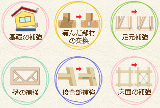 耐震補強と一言でいってもいろいろな補強工事があります。